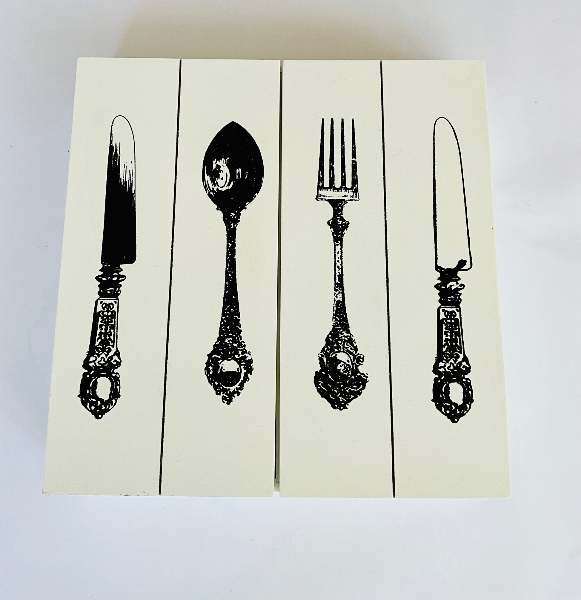 Caja decorativa y funcional. Cuenta con dos tapas, que permiten manipular fácilmente el abrir y cerrar para guardar cubiertos y utensilios.
