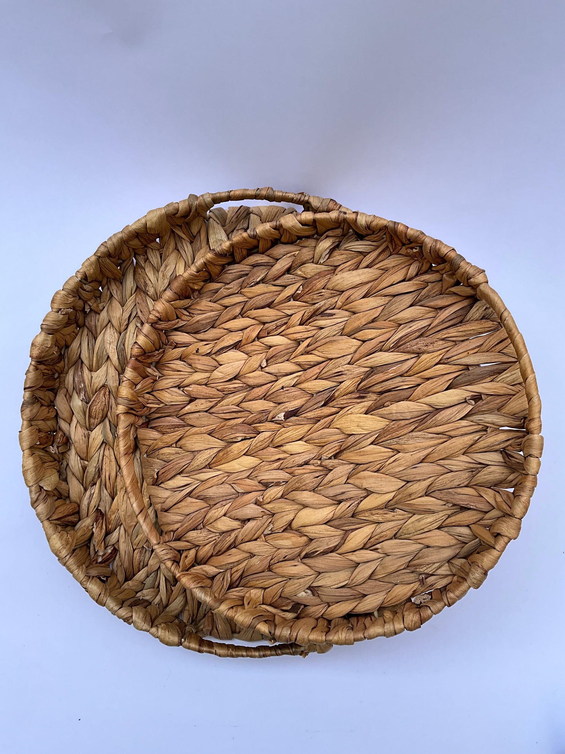 Set de 2 Bandejas redondas de fibra entramado natural.